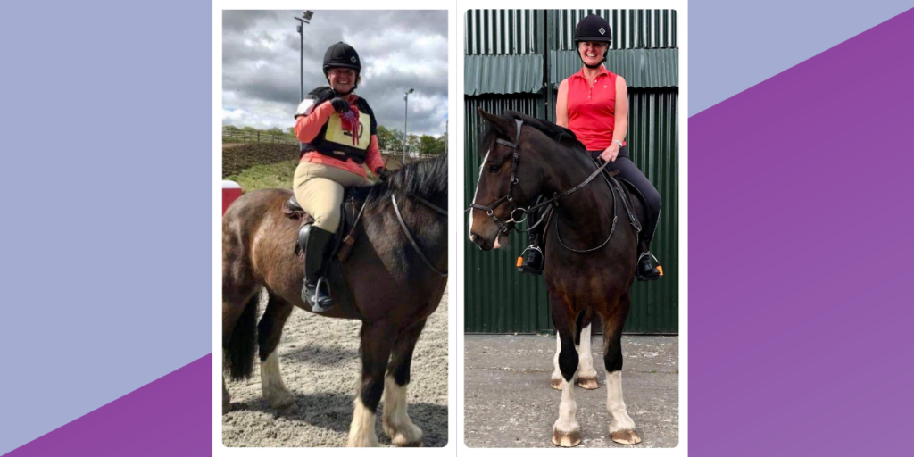 Having coached Carolyn before her weight loss journey Liz has seen first-hand the benefits to Carolyn’s riding and confidence levels with her horse Bobby.